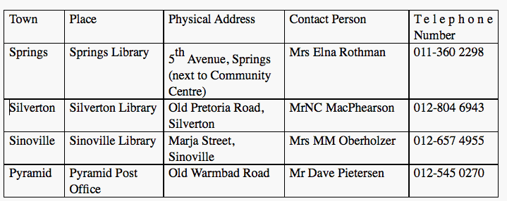 Post: Private Bag X2352 Wingate Park, 0153, South Africa.