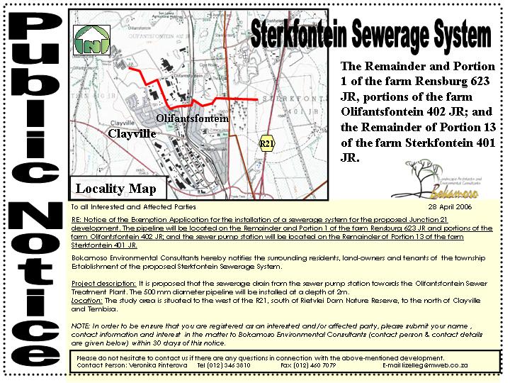 Subject: DKOA: BOKAMOSA NOTICE - Proposed Sterkfontein Sewage system