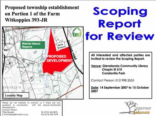 Subject: Proposed Township Establishment on Ptn 1 of the farm Witkoppies