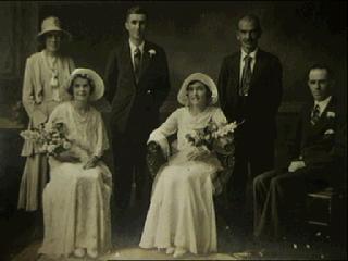 Wedding of Victor Larsen and Ivy Jones - L/R : Mary Anne Edwards (Mother of groom) Marjorie Jones (sister of bride), Victor Theodore Larsen (groom), Ivy Myrtle Jones (bride), James Stretton Jones (father of bride), Angel Sivert Larsen (older brother of groom) - 10th February 1931 : Durban, Natal, South Africa.