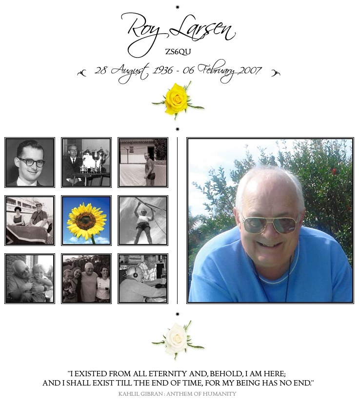 GO TO ROY LARSEN (ZS6QU) - MEMORIAL PAGE