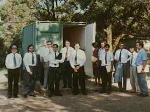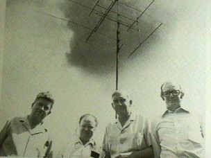 South African Transequatorial Propagation Team February 1979: L/R - Fred Anderson ZS6PW (Team Leader), John McCoy ZS6JM, Doug Hutchenson ZR6JH, Dave Larsen ZS6DN - Antenna: 144 MHz KLM Stack Array - 4x 16 Elm yagi array