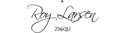 Our late uncle 'Wireless Windy Larsen' (ZS5BE) taught me to send and receive Morse code on a post office double sounder. We did not realise that my younger brother Roy was not only listening but learning at the same time. When Roy had his turn on the key our uncle said that he was going to be a 'first class telegraphist'. Roy was about six years old at the time and had difficulty spelling even three letter words. But he could send from a book and copy what was sent both in his head and on paper.